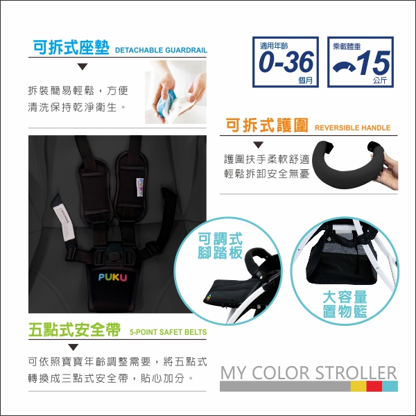 PUKU的推車都是依照標準0-36個月適用、限重15公斤