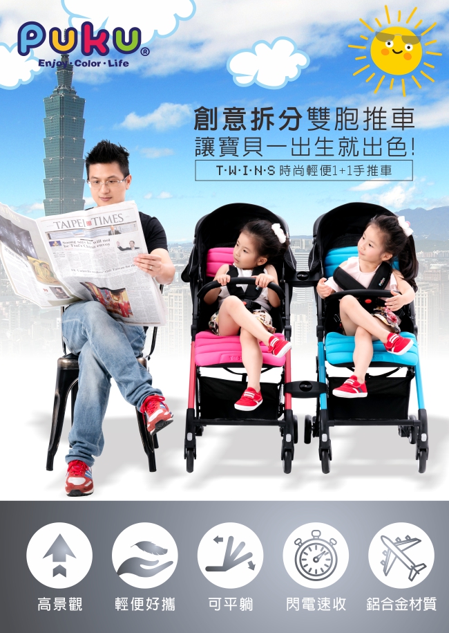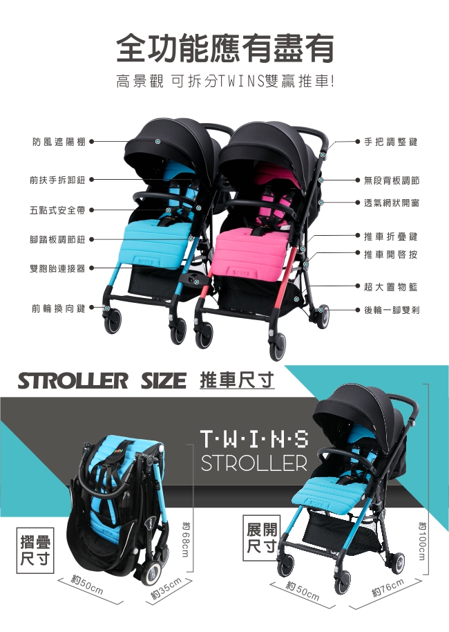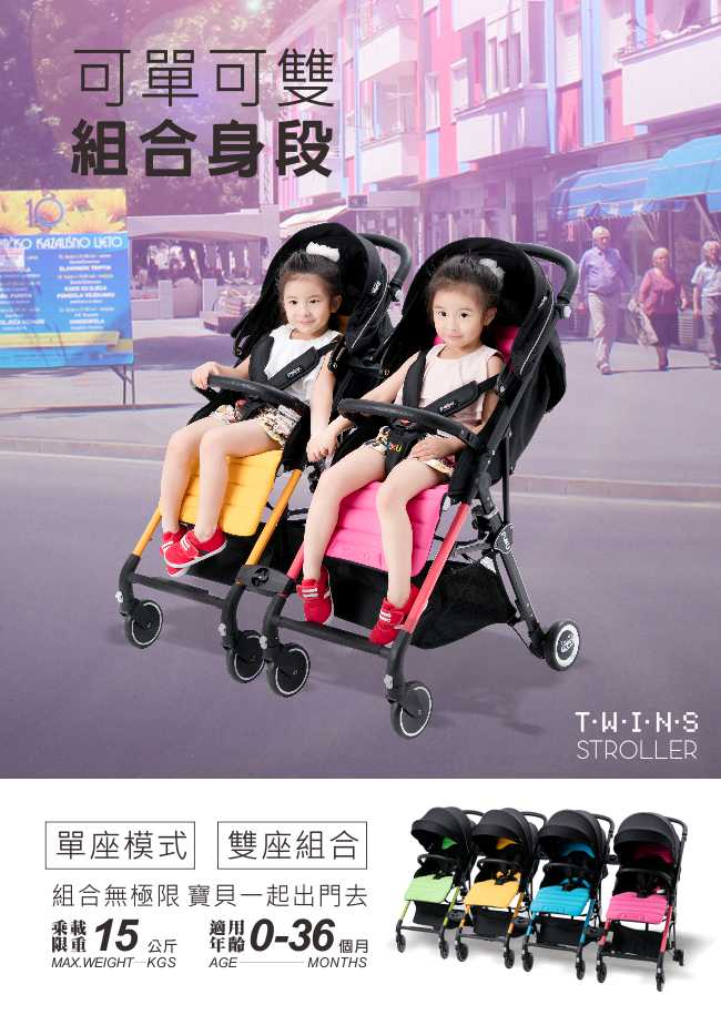 3、Twins時尚輕便1+1手推車