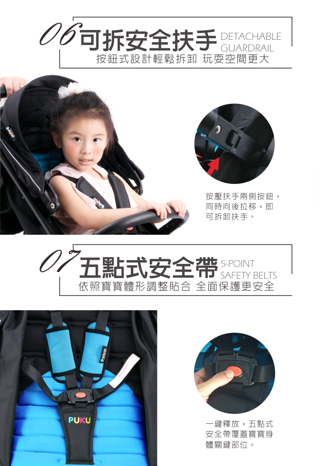 PUKU的推車扶手都是可拆式的,遇到緊急狀況時非常方便![]()